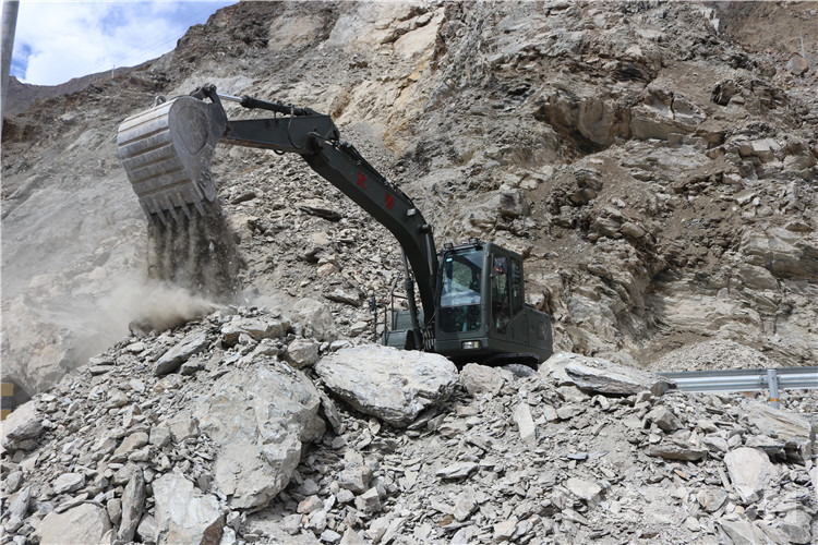 抵達現(xiàn)場后,武警官兵及時對災(zāi)害路段實施交通管制,并把滯留車輛疏導(dǎo)至安全區(qū)域,隨即對泥石流堆積物和塌方體進行清理。因災(zāi)害點處于峽谷地帶,地勢十分險要,作業(yè)面狹窄,且降雨及落石持續(xù)不斷,為確保搶通工作高效安全,指揮員科學(xué)指揮,安全員高度警惕,操作手快速搶通,各要素密切配合,給道路搶通工作爭取了寶貴時間。