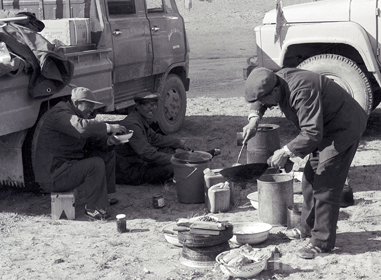 這是陜西省動物研究所姚建初(左一)等動物學(xué)家在科考中自己動手起火做飯(唐召明1987年攝)