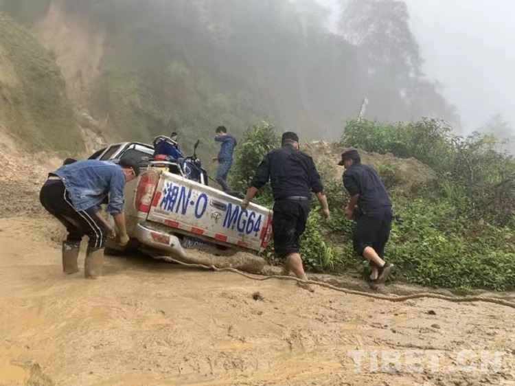 “當(dāng)天上午我與家人正打算回家,誰知雨越下越大,不時還有泥石流,為躲避滾落下來的碎石,一不注意車輪打滑,導(dǎo)致車輛陷入泥土中,越陷越深,我們害怕地跳下了車就報警。”陳先生是該車的車主,回憶起事情經(jīng)過他還心有余悸,“所幸有移民管理警察,當(dāng)我們看到他們的身影出現(xiàn),就知道有救了。他們很給力,與當(dāng)?shù)刳s來幫忙的群眾一起解救了我們,真的非常感謝他們!”(中國西藏網(wǎng) 通訊員/孫月 姜凱峰 記者/王佳豪 圖片由背崩邊境派出所提供)