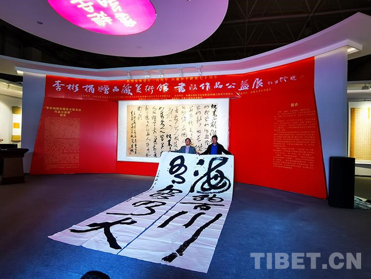 圖為李彬捐贈西藏美術(shù)館書法作品公益展現(xiàn)場 攝影:王媛媛