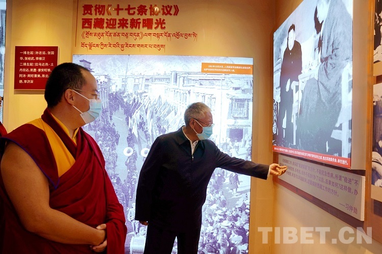圖為班禪觀看《十七條協(xié)議》有關(guān)展板 攝影:王淑