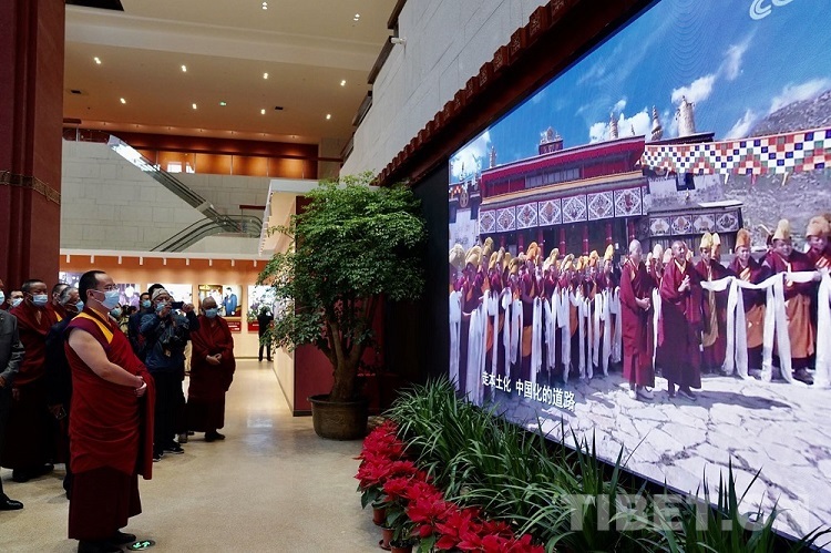 2021年7月21日至23日,習(xí)近平總書記親臨西藏考察調(diào)研,發(fā)表重要講話,充分肯定西藏經(jīng)濟社會發(fā)展各項事業(yè)取得的巨大成就,就進一步做好新時代西藏各項工作提出了明確要求。在報道習(xí)近平總書記考察西藏新聞的數(shù)字屏前,班禪駐足停留,認真觀看有關(guān)報道,不時低頭沉思。