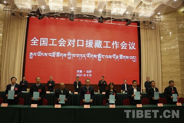 圖為承擔(dān)援藏任務(wù)的各省市總工會、央企工會和西藏各市(地)工會項(xiàng)目簽約儀式 攝影:王佳豪