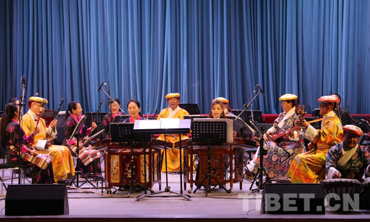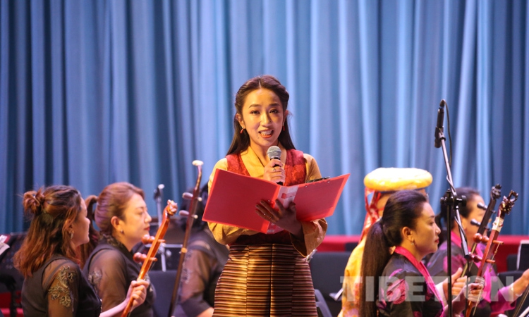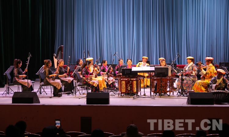 演出在民樂合奏《花好月圓》中正式拉開帷幕,由扎念琴、達(dá)瑪鼓、畢旺等藏族傳統(tǒng)樂器演奏的、獨(dú)具阿里“宣舞”特色的器樂合作《古格回音》、西藏傳統(tǒng)歌舞堆諧《百美百東》、弦子《藏東神韻》、管弦樂《我的祖國》、女聲獨(dú)唱《唱支山歌給黨聽》等共13個精彩紛呈的節(jié)目接連上演,引得現(xiàn)場掌聲陣陣。