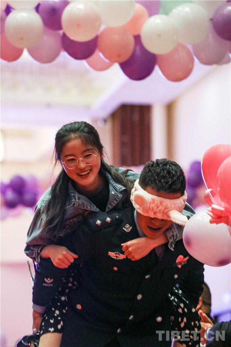 活動(dòng)過程中,總站形象宣傳片《我是誰》,向女嘉賓們展現(xiàn)了西藏移民管理警察的職業(yè)特點(diǎn),使女嘉賓對民警工作職責(zé)產(chǎn)生了初步的認(rèn)識(shí)。在主持人的引導(dǎo)下,精彩的才藝展示和豐富的游戲環(huán)節(jié)很快將現(xiàn)場氣氛推向一個(gè)接一個(gè)的高潮?;?dòng)游戲“牽手牽愛”“心有靈犀”“守護(hù)愛情”“唯愛接力”通過聆聽詩句抓緊手指、借助比劃你問我答,相互協(xié)助完成任務(wù)等方式增進(jìn)了男女嘉賓之間的了解和默契,促進(jìn)了相互之間更好交流。男女嘉賓才藝表演和日喀則邊境管理支隊(duì)1753樂隊(duì)送上的精彩曲目,令活動(dòng)現(xiàn)場青春洋溢。最終,18對男女嘉賓互生情愫,牽手成功,36對交換聯(lián)系方式,開啟更加深入的幸福交流。