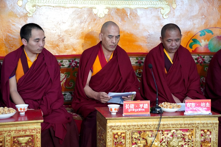 張延清說,今年,在中國共產(chǎn)黨成立100周年,西藏和平解放70周年之際,習(xí)近平總書記作為中共中央總書記、國家主席、中央軍委主席到西藏慶祝西藏和平解放,在黨和國家歷史上是第一次,充分體現(xiàn)了以習(xí)近平同志為核心的黨中央對邊疆地區(qū)的深情牽掛、對西藏工作的高度重視、對西藏各族干部群眾的深厚感情。7月22日下午,習(xí)近平總書記來到建寺600多年的哲蚌寺,受到了全寺僧人最高禮遇的迎接。習(xí)近平總書記充分肯定了哲蚌寺在擁護中國共產(chǎn)黨、擁護社會主義制度、維護祖國統(tǒng)一等方面做出的積極貢獻,并關(guān)心詢問僧人身體狀況特別是老年僧人健康問題,在場的僧人都很感動??v觀世界,國家領(lǐng)導(dǎo)人如此高度重視宗教工作、如此深情關(guān)懷宗教界人士,唯有中國、唯有中國共產(chǎn)黨的領(lǐng)導(dǎo)人。知恩、念恩、感恩、報恩是菩提心的根本。各位僧人朋友們一定要按照習(xí)近平總書記的指示精神,守法敬業(yè)、愛國愛教、潛心修行、向善為民、利益眾生,真正做慈悲為懷的真佛子。