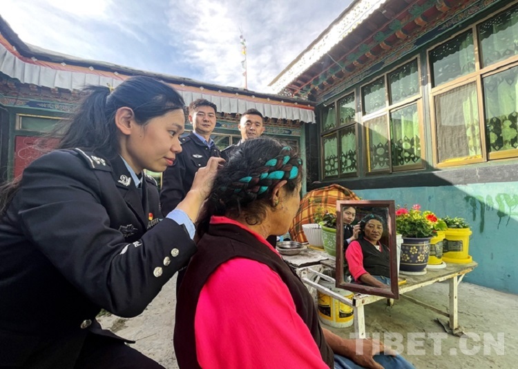 圖為民警為老人梳理頭發(fā)