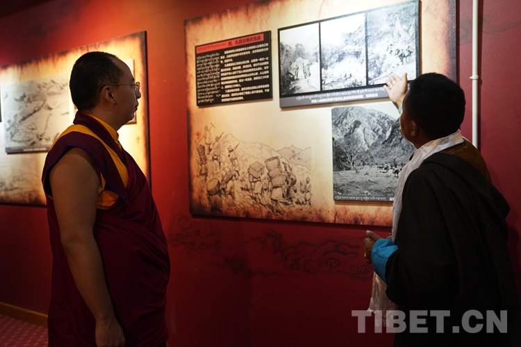 江孜抗英紀念館展示了英國入侵者非法測繪的西藏地圖、尼泊爾至拉薩地圖等,講解人員詳細介紹了乃寧寺血戰(zhàn)、扎昌谷地伏擊戰(zhàn)、曲米新古大屠殺等沉痛的歷史事件。班禪緩緩參觀,仔細觀看展出的照片、介紹,神色凝重。