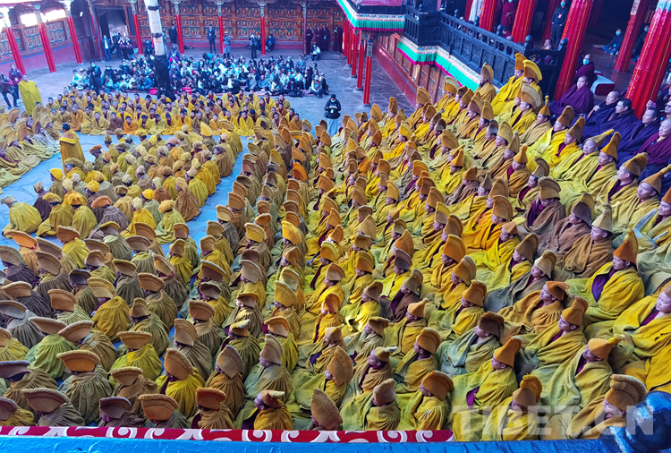 經(jīng)過數(shù)日準(zhǔn)備,26日下午,班禪于扎什倫布寺參加嘎欽學(xué)位立宗答辯。來自西藏自治區(qū)藏傳佛教各教派的堪布、經(jīng)師等高僧以及扎什倫布寺僧眾、信教群眾等800人共赴盛會、共享法喜。