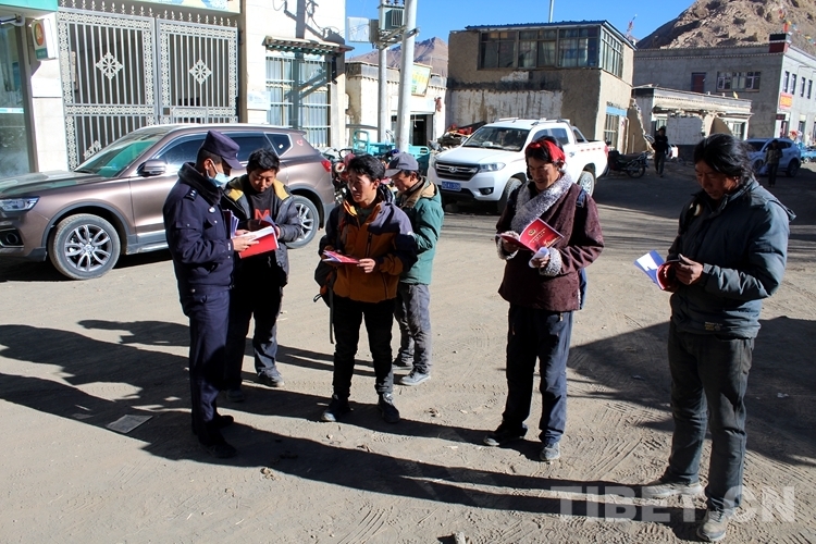 圖為其美多吉在扎西宗鄉(xiāng)街道為轄區(qū)群眾宣傳戶籍辦理的常識