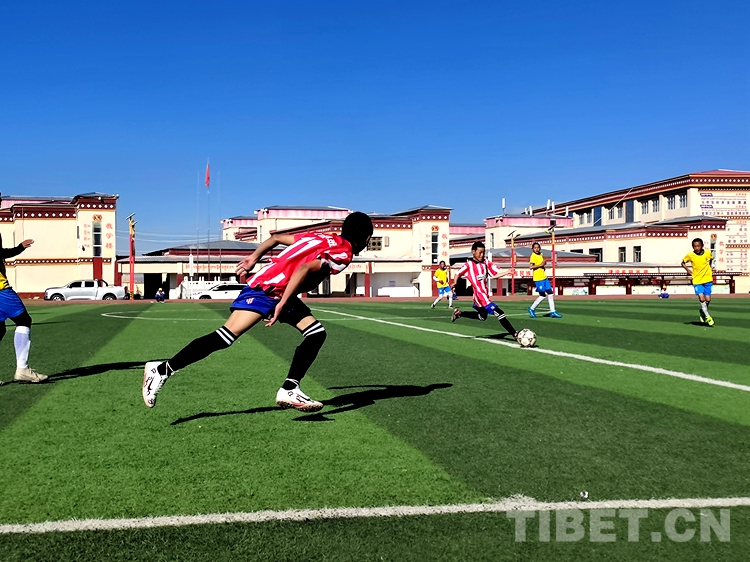 圖為西藏自治區(qū)拉薩市曲水縣的孩子在學(xué)校踢球 攝影:趙耀