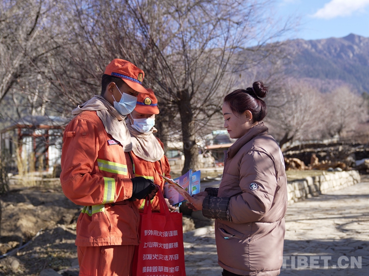 圖為巴宜區(qū)中隊(duì)指戰(zhàn)員為駐地群眾普及防火知識(shí)