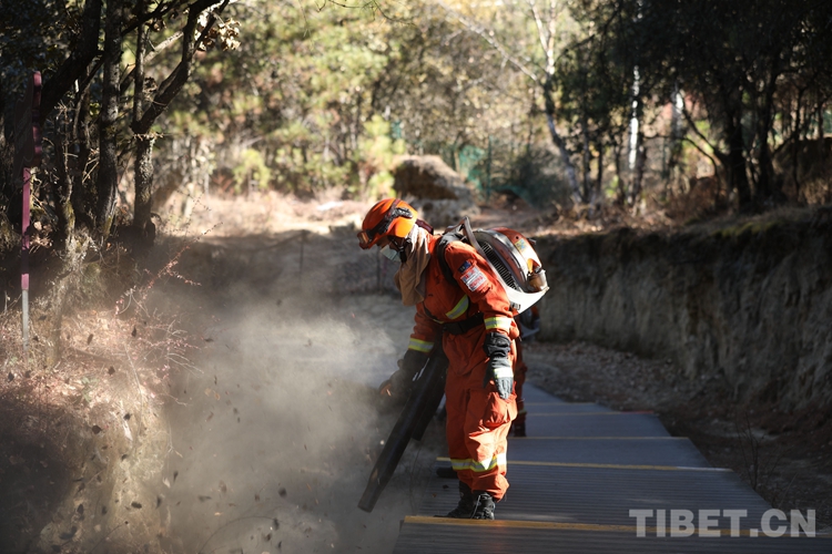 圖為巴宜區(qū)中隊(duì)指戰(zhàn)員清理林下可燃物