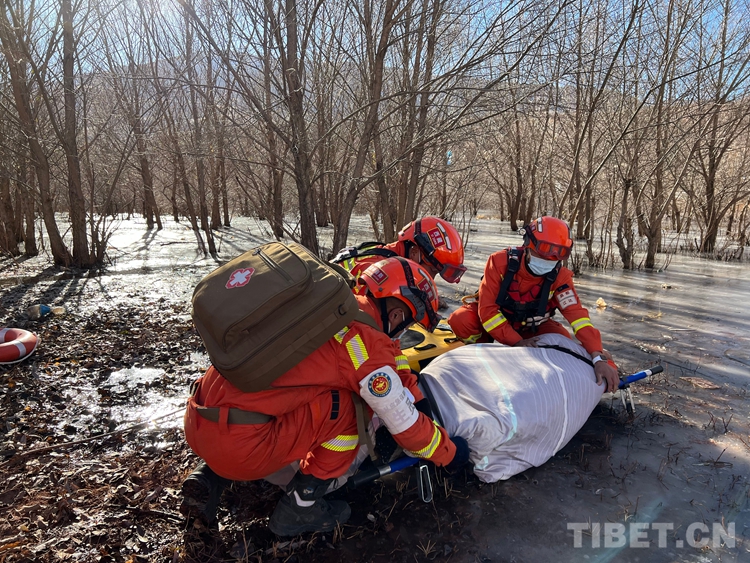 訓練前,貢覺縣駐防分隊堅持從實戰(zhàn)出發(fā),提前設置規(guī)劃冰面落水救援地點。到達指定位置后,全體指戰(zhàn)員快速反應,在確保安全的前提下,救援人員采取攜裝匍匐前進的方式,有條不紊地操作擔架與救生圈,救助墜入冰下的遇險人員。安全員及時提醒救助人員冰上隨時可能發(fā)生的突發(fā)狀況。其余人員在受力地點制作錨點進行安全輔助。被救人員到達安全區(qū)域后,醫(yī)療救護組及時對被救人員做好防寒保暖工作,針對被救人員傷情采取有效急救措施。