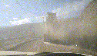艱難通過塌方道路后