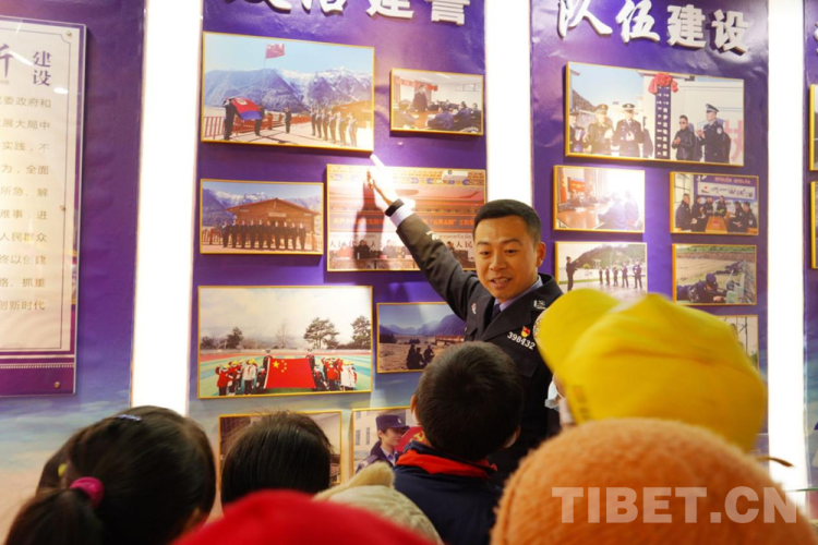 圖為林芝南伊邊境派出所邀請駐地小學生參觀單位榮譽室 攝影:馬智慧