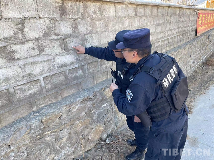 圖為林芝邊境管理支隊(duì)里龍邊境派出所民警在轄區(qū)群眾家中查看房屋受損情況 攝影/吳敏