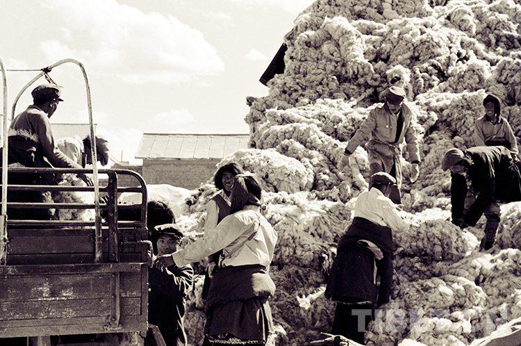 這是通過(guò)雙湖西亞爾公司解決了運(yùn)輸問(wèn)題,牧民群眾踴躍到那曲鎮(zhèn)向國(guó)家交售羊毛(唐召明1987年攝)
