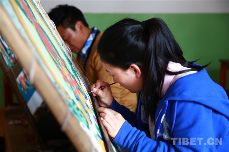 圖為西藏唐卡畫院中正在學(xué)習(xí)繪畫技術(shù)的年輕人 攝影:許娜