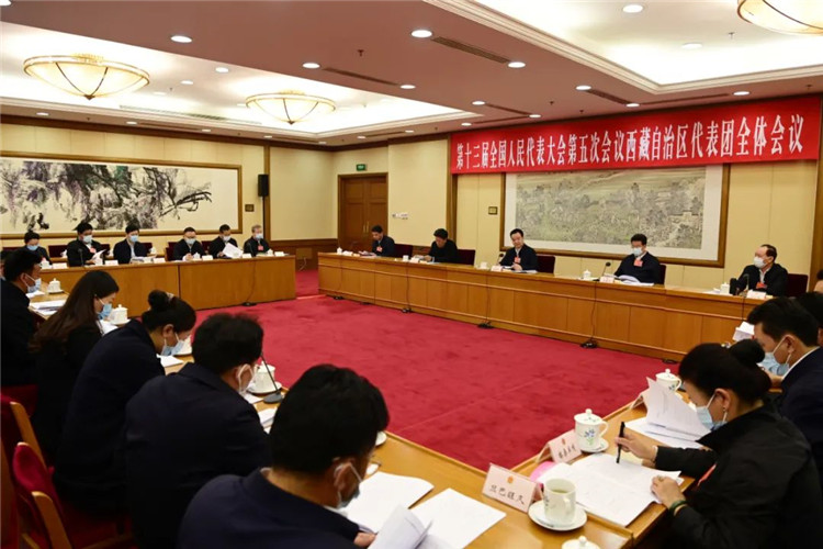 圖為3月3日下午,十三屆全國(guó)人大五次會(huì)議西藏自治區(qū)代表團(tuán)召開第一次全體會(huì)議。旦增西旦 攝