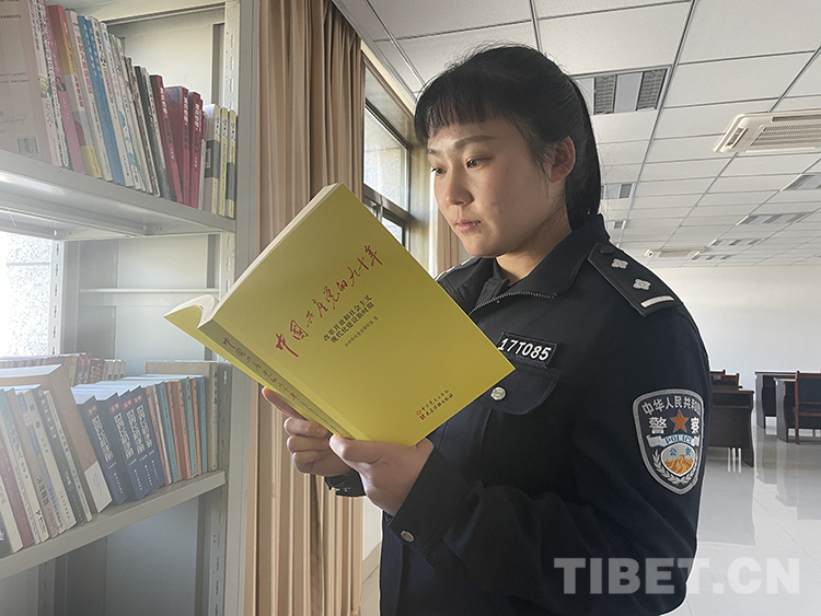 圖為西藏林芝背崩邊境派出所民警李倩在閑暇的時(shí)候閱讀紅色書(shū)籍 攝影:呂恒剛