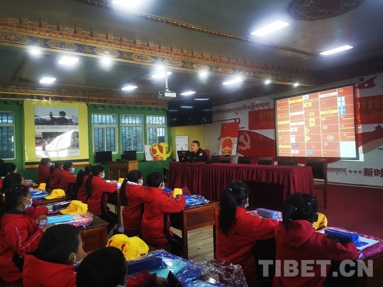 當(dāng)天,西藏林芝金東邊境派出所民警李青昀早早地起床,又認(rèn)真熟悉了一遍課件內(nèi)容,帶著電腦來(lái)到了朗縣國(guó)門(mén)講習(xí)所,他要為當(dāng)?shù)匦W(xué)生帶來(lái)愛(ài)國(guó)主義小課堂。