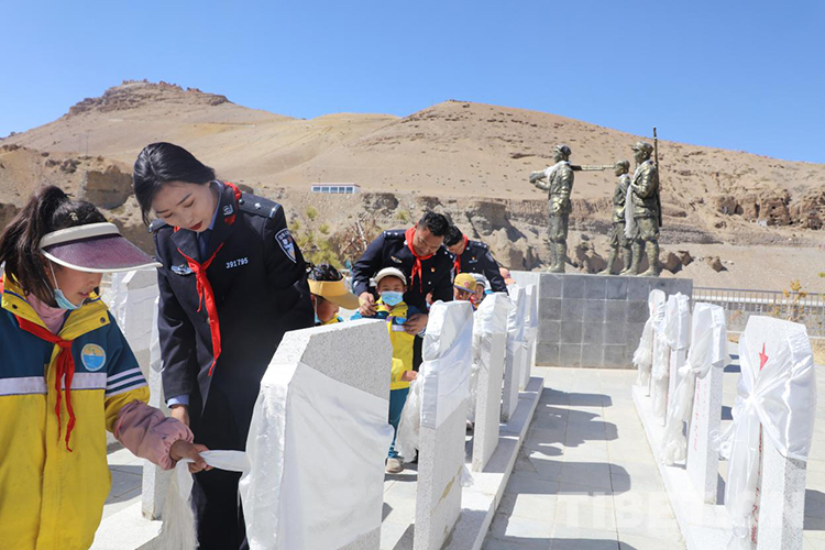 中國西藏網(wǎng)訊 青松翠柏守英烈,春風(fēng)百花寄哀思。在清明節(jié)來臨之際,為傳承英烈遺志,弘揚(yáng)英烈精神,4月2日,西藏普蘭出入境邊防檢查站民警與普蘭縣九年一貫制學(xué)校少先隊(duì)員們一起來到普蘭縣烈士陵園開展“清明祭英烈”活動。