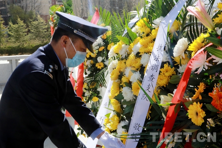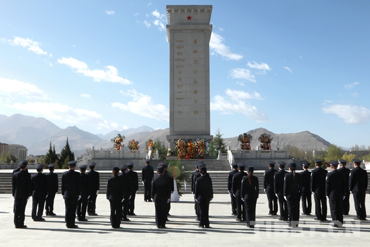 圖為西藏邊檢總站執(zhí)法調(diào)查支隊(duì)民警在拉薩烈士陵園開展祭奠活動(dòng) 攝影:劉明陽