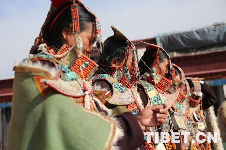 圖為普蘭縣群眾穿著傳統(tǒng)“飛天”服飾表演普蘭“宣”舞 攝影:王佳豪