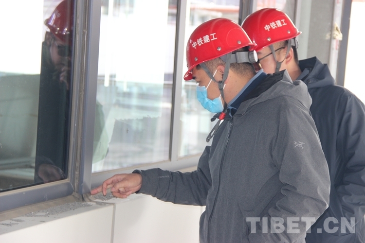 圖為張磊(左)和同事對西藏自治區(qū)醫(yī)院項(xiàng)目施工開展現(xiàn)場檢查