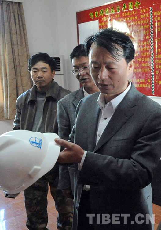 這是中國(guó)石化首批援藏干部李一超,在回憶他向祁愛群贈(zèng)送這頂?shù)V工帽的經(jīng)過(唐召明2009年8月12日攝)