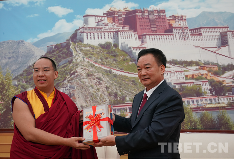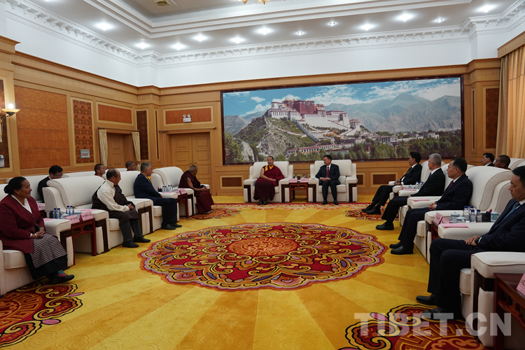 西藏自治區(qū)領(lǐng)導(dǎo)洛桑江村、莊嚴(yán)、陳永奇、嘎瑪澤登、達(dá)娃次仁、甲熱·洛桑丹增、珠康·土登克珠、薩龍·平拉、索朗仁增陪同會(huì)見。(中國西藏網(wǎng) 記者/王淑 拉姆)