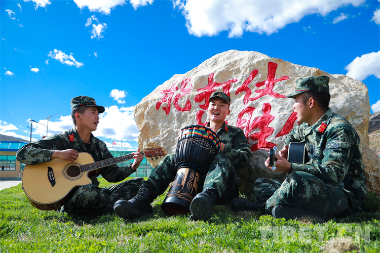 中國西藏網(wǎng)訊 近日,駐守在平均海拔4300米的西藏自治區(qū)昌都市八宿縣邦達鎮(zhèn)的武警第二機動總隊某支隊官兵,充分發(fā)揮興趣愛好特點,開展了樂隊演奏、書香軍營、讀書分享會等特色軍營文化活動,豐富了高原軍營文化生活,進一步鑄牢了青年官兵扎根高原、建設(shè)邊疆的堅定理想信念。圖為該支隊官兵正在彈奏自編歌曲《青春高原》 攝影:陸文凱(中國西藏網(wǎng) 通訊員/陸文凱)
