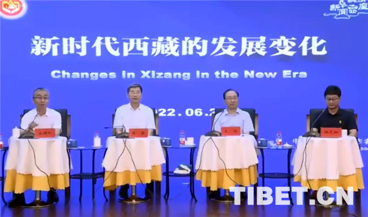 圖為6月22日,中國藏學研究中心二級研究員、學術(shù)委員會委員張云(左二),社會經(jīng)濟研究所所長、研究員扎洛(左三),宗教研究所副所長、副研究員拉先加(右一)參加中國記協(xié)舉辦的“新時代西藏的發(fā)展變化”新聞茶座 截圖:劉莉