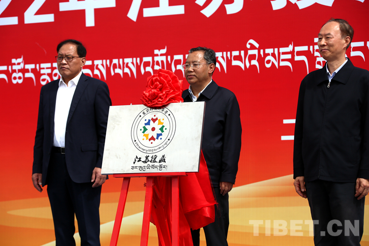 圖為現(xiàn)場(chǎng)發(fā)布江蘇援藏項(xiàng)目標(biāo)識(shí) 攝影:王佳豪