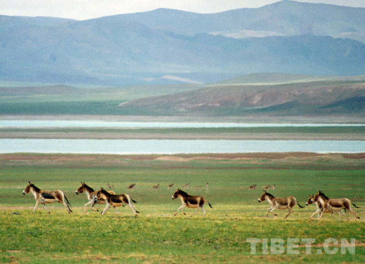 這是奔跑在羌塘國家級自然保護區(qū)的國家一級保護動物藏野驢(唐召明1988年攝)