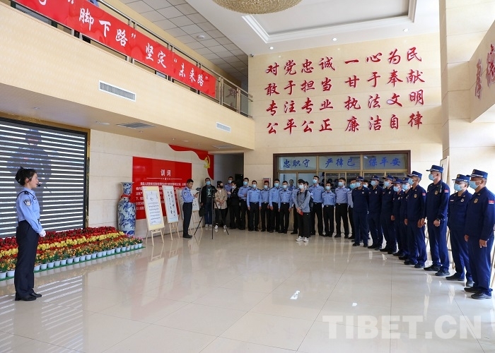 中國西藏網(wǎng)訊 夏日的西藏日喀則邊境管理支隊營區(qū)熱鬧非凡,日喀則海關(guān)、日喀則團市委、日喀則市退役軍人事務局、日喀則市教育局、日喀則市消防救援支隊、日喀則市反恐特偵支隊等友鄰單位干部代表與支隊民警齊聚在支隊機關(guān)觀展覽、品佳作、參觀警史館,喜迎二十大。