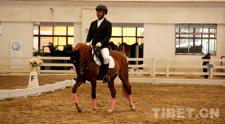 圖為在拉薩分賽場西藏自治區(qū)第十三屆運動會舉行的馬術(shù)項目盛裝舞步比賽 攝影:德吉卓嘎