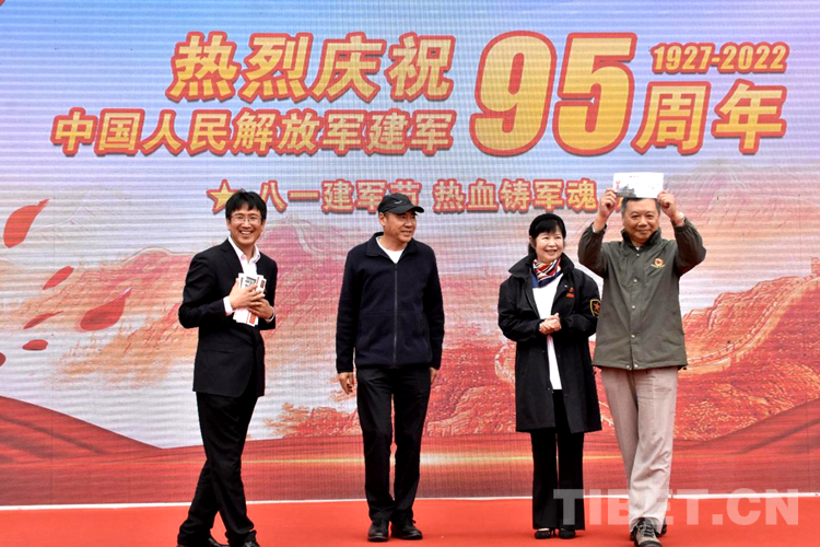圖為圖為中國關(guān)心下一代紅偉愛國主義西藏教育基地正式簽約授牌儀式現(xiàn)場開國元勛后代們?yōu)槊飨裾虏┪镳^贈送簽名建軍95周年紀(jì)念封和紀(jì)念郵箋 攝影:拉姆