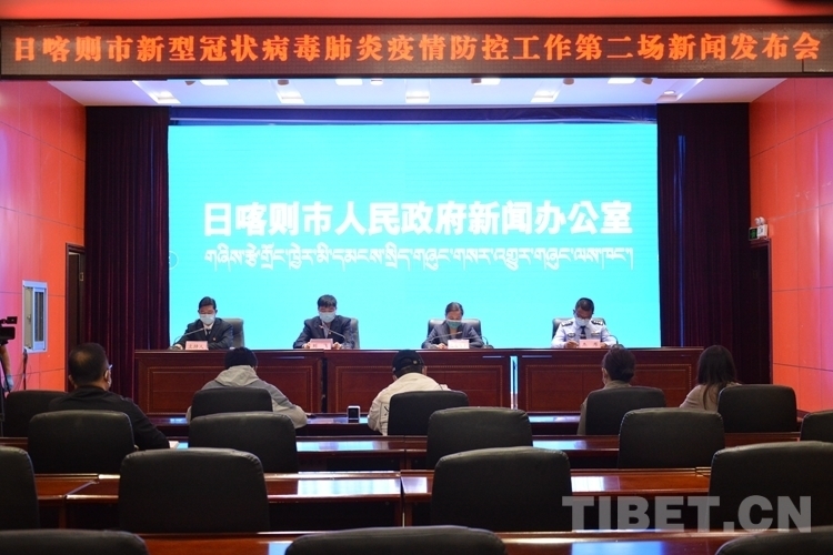 圖為日喀則市召開第二場(chǎng)新冠肺炎疫情防控新聞發(fā)布會(huì)現(xiàn)場(chǎng)
