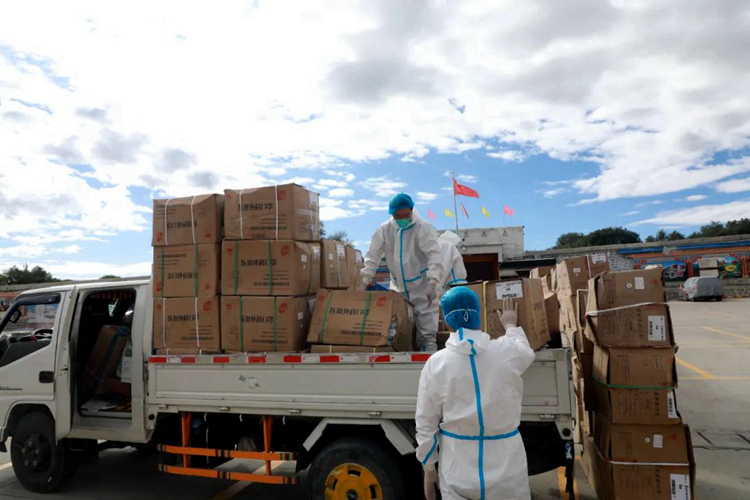 9月7日,日喀則市江當(dāng)鄉(xiāng)的恩貢寺活佛恩貢·秋吉·貢桑旺堆向日喀則市桑珠孜區(qū)捐贈口罩30萬只、防護服1萬套,共計價值20余萬元。