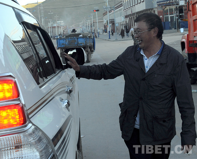 這是時(shí)任班戈縣副縣長(zhǎng)李正斌在縣城街頭與乘車(chē)熟人打招呼(唐召明2012年8月2日攝)
