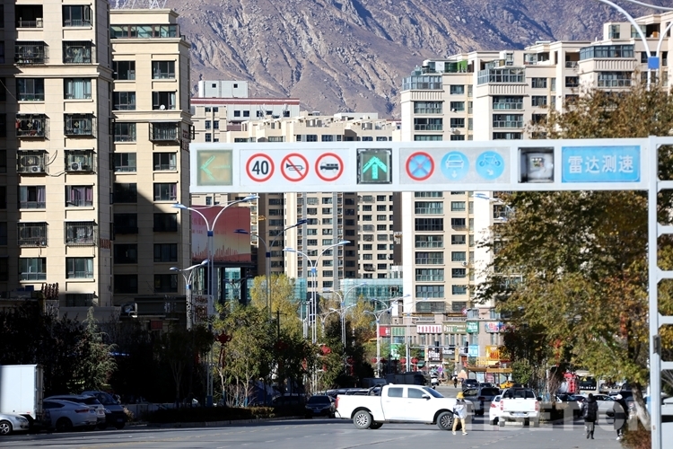 圖為拉薩市柳梧新區(qū)北京大道上有不少步行或駕車(chē)外出的居民群眾 攝影:王佳豪