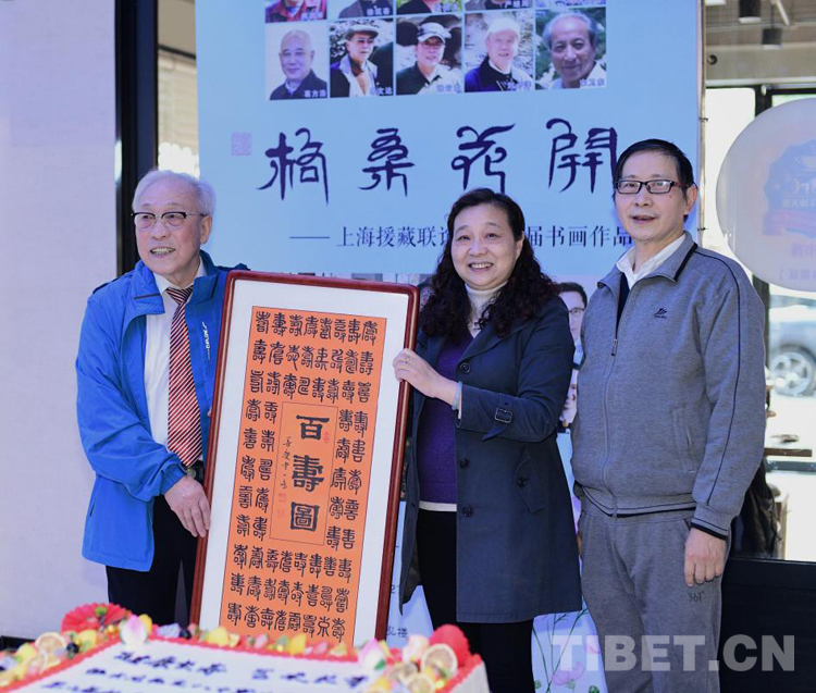 開幕式當(dāng)天,恰逢張先生八十大壽,書畫展組委會特地送上蛋糕祝賀,徐匯區(qū)書畫協(xié)會也以一幅《百壽圖》向張先生表達(dá)敬意,祝他“健康長壽、藝術(shù)長青”。(中國西藏網(wǎng) 文/葛榮江)