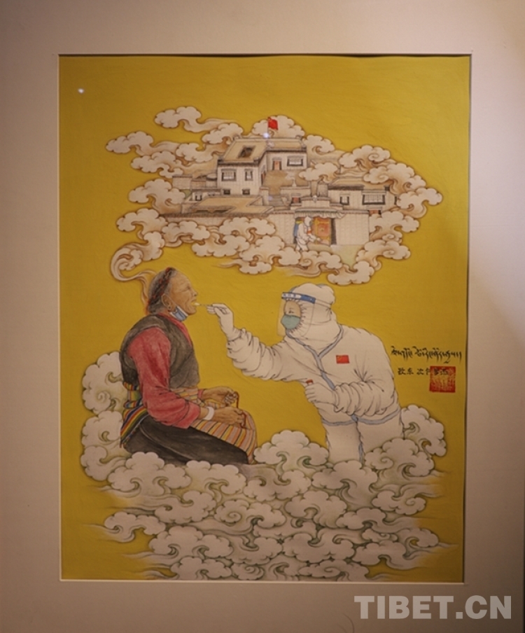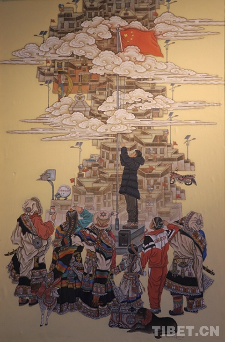“畫家們在延續(xù)深厚傳統(tǒng)文化,彰顯西藏唐卡繪畫高超技藝的同時,不固守畫派風格特色,用創(chuàng)新的方式聚焦偉大時代,描繪美好生活,歌頌西藏與祖國同行的盛世圖景?!蔽鞑刈灾螀^(qū)文聯(lián)副主席尹小林說。