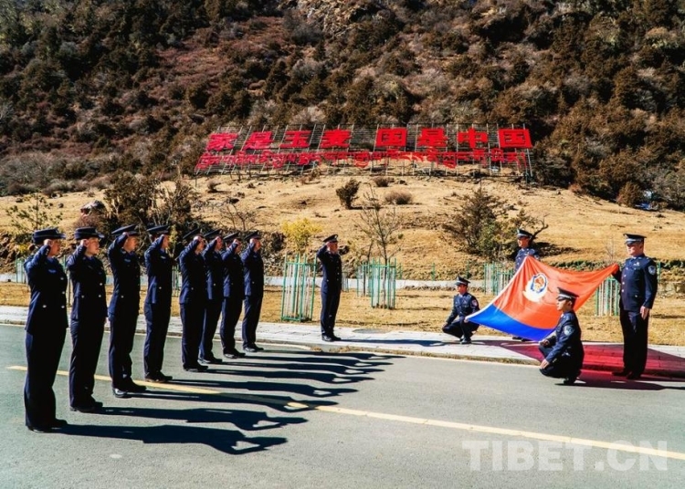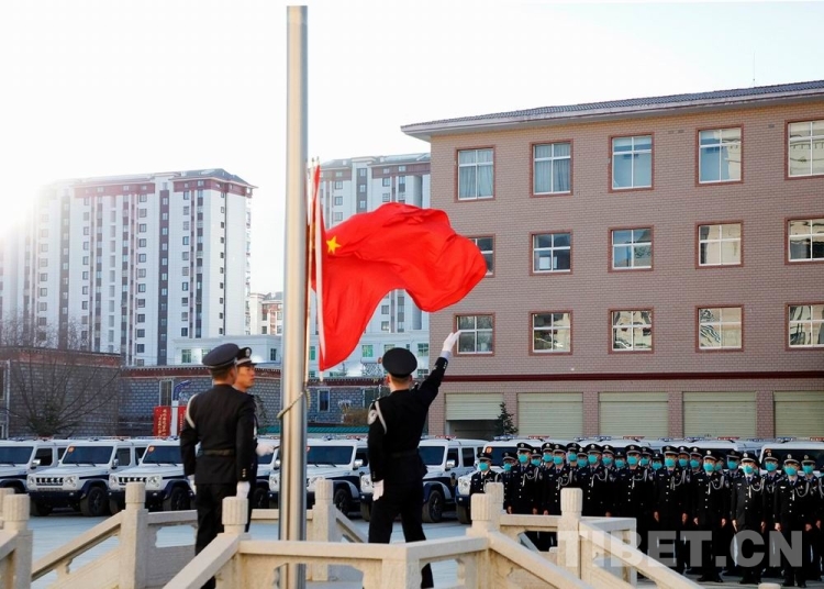 圖為山南邊境管理支隊(duì)舉行“升國旗 唱國歌”儀式 鄭琦山 攝