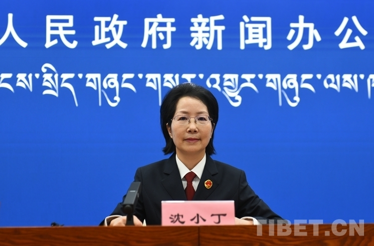 圖為西藏自治區(qū)人民檢察院檢委會(huì)專職委員、新聞發(fā)言人沈小丁介紹相關(guān)情況