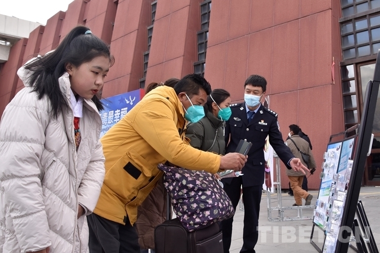 圖為活動(dòng)現(xiàn)場(chǎng)民警向旅客宣講禁毒知識(shí) 攝影:次旦拉姆
