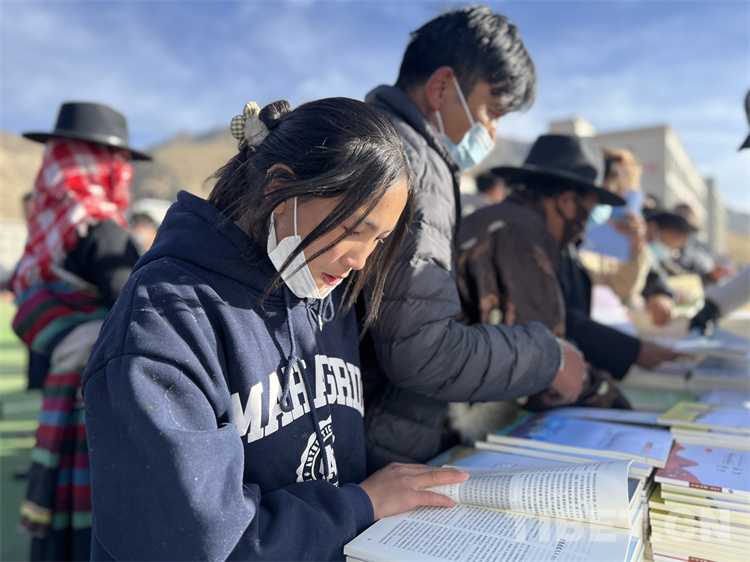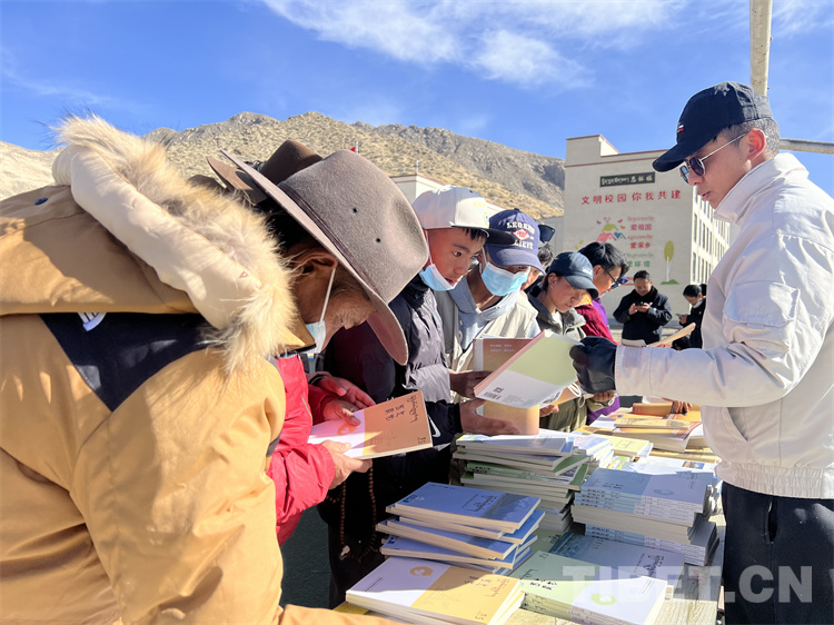 在送“書籍” 現(xiàn)場,《西藏文學(xué)》《西藏文藝》《邦錦梅朵》三個(gè)編輯部工作人員為現(xiàn)場群眾和當(dāng)?shù)?span style="text-align: center; background-color: rgb(253,242,234)">干部贈(zèng)送書籍,當(dāng)?shù)厝罕姾蛯W(xué)生們紛紛前來翻看尋找自己喜歡的書籍,大家人手幾本書。“我平時(shí)喜歡閱讀藏文文學(xué)作品,這次要了兩本文學(xué)相關(guān)書籍拿回家閱讀”17歲的益西巴珍說。據(jù)了解,此次活動(dòng)西藏文聯(lián)向熱愛閱讀的群眾和學(xué)生共贈(zèng)送1500本(冊(cè))文藝書籍和期刊。