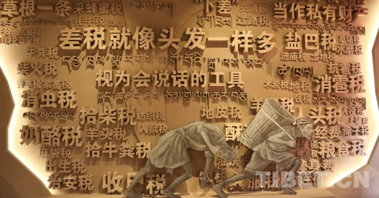圖為西藏民主改革第一村陳列館改陳展內(nèi)利用浮雕的方式生動展現(xiàn)了民主改革前“農(nóng)奴”背負(fù)沉重的差稅 攝影:王佳豪